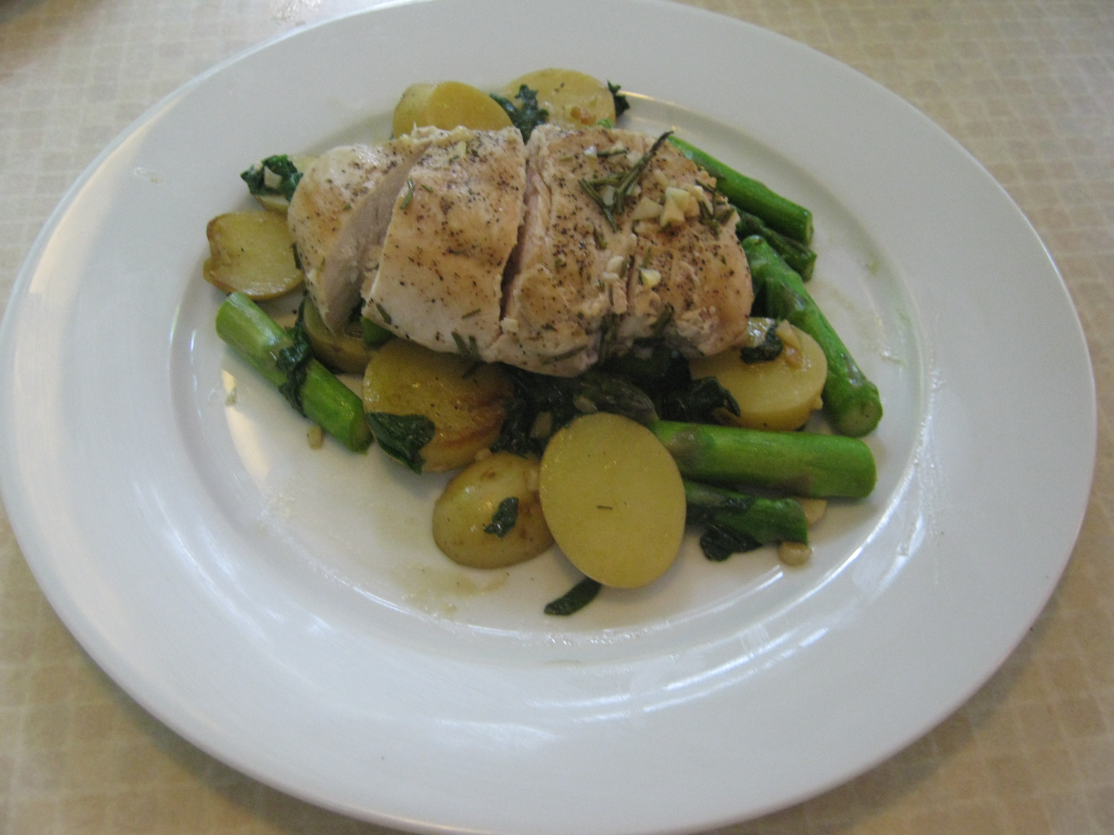 Ta Da! Garlic and Lemon Roasted Chicken with Spinach and Asparagus